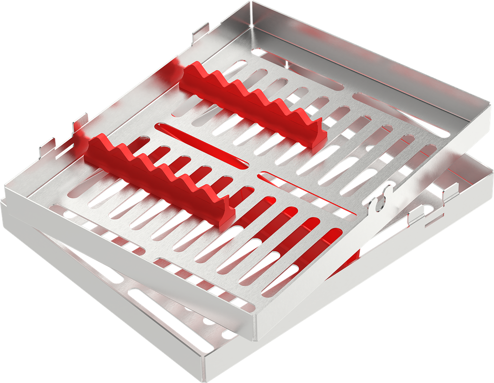 Rosso - MEDIUM 182x144x34 mm - per 5 strumenti, completo di rastrelliera in silicone