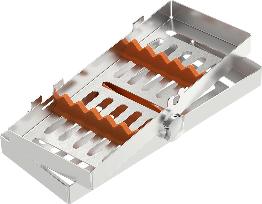 橙色 - 迷你 182x72x34 mm - 可放5件器械,配有硅胶齿条